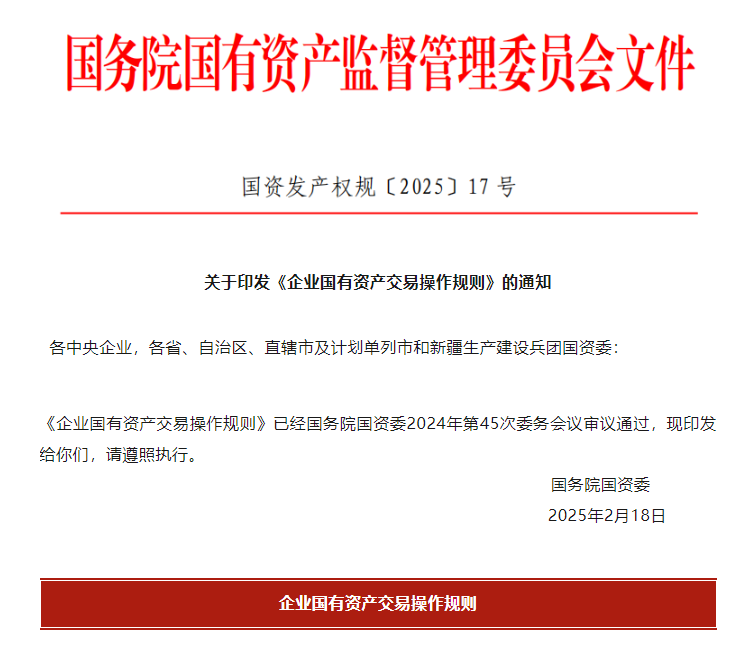 為進(jìn)一步完善企業(yè)國有資產(chǎn)交易制度,提升國有資產(chǎn)流轉(zhuǎn)配置效率和規(guī)范性,近日,國務(wù)院國資委修訂印發(fā)了《企業(yè)國有資產(chǎn)交易操作規(guī)則》(以下簡稱《規(guī)則》)。此次《規(guī)則》修訂主要體現(xiàn)在以下方面: